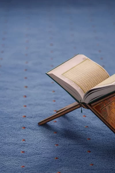 Het vasthouden van de Koran in het gebed tijdens de recitatie van de imam