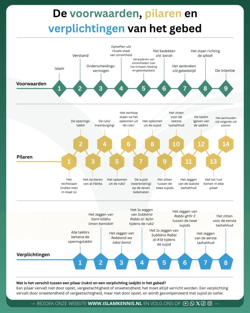De verplichte handelingen (wādjibāt) van het gebed: